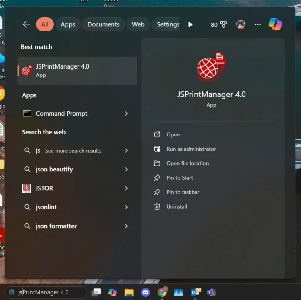 Step 3: Search for “JSPrint” on your computer’s search. Click on it and it should launch. Note that there will not be any application popping up.
