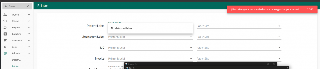 The issue here is that the application: “JSPrinterManager 4.0” is not launched.