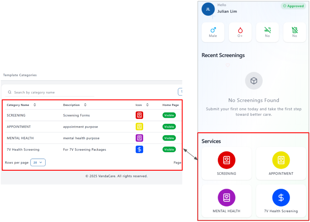 Once the request have been approved or rejected, patients will be able to see the Screening Request status as below
